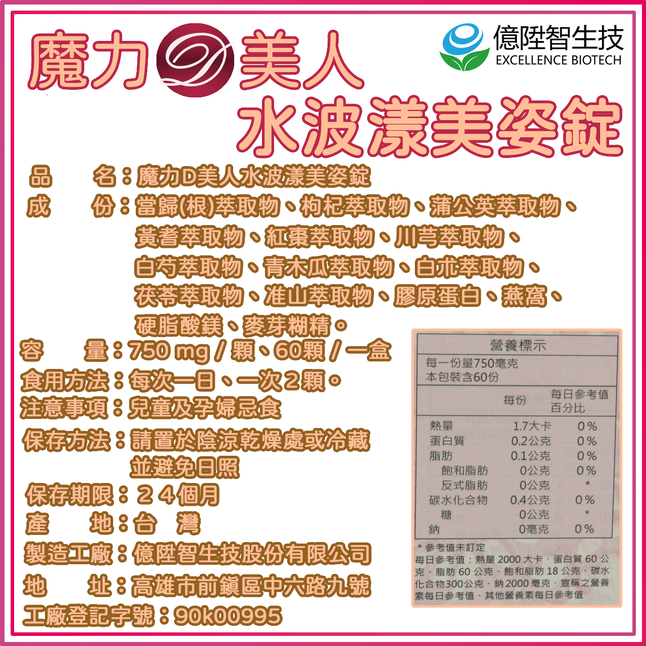 規格 : 750mg x 60粒 / 盒
